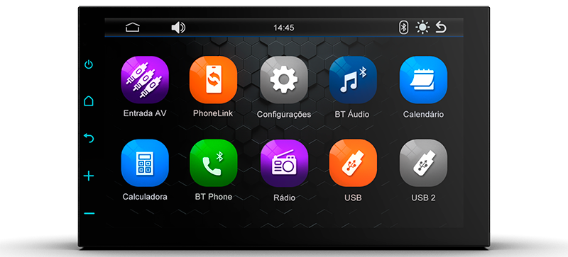 A nossa central oferece duas portas USB para smartphone e pendrive, entrada AV reversivel para TV Digital ou câmera frontal e saídas de áudio especializadas, inclusive para subwoofer. A saída de vídeo aprimora o entretenimento traseiro, e a entrada para câmera traseira eleva a segurança. Explore um mundo de conexões!